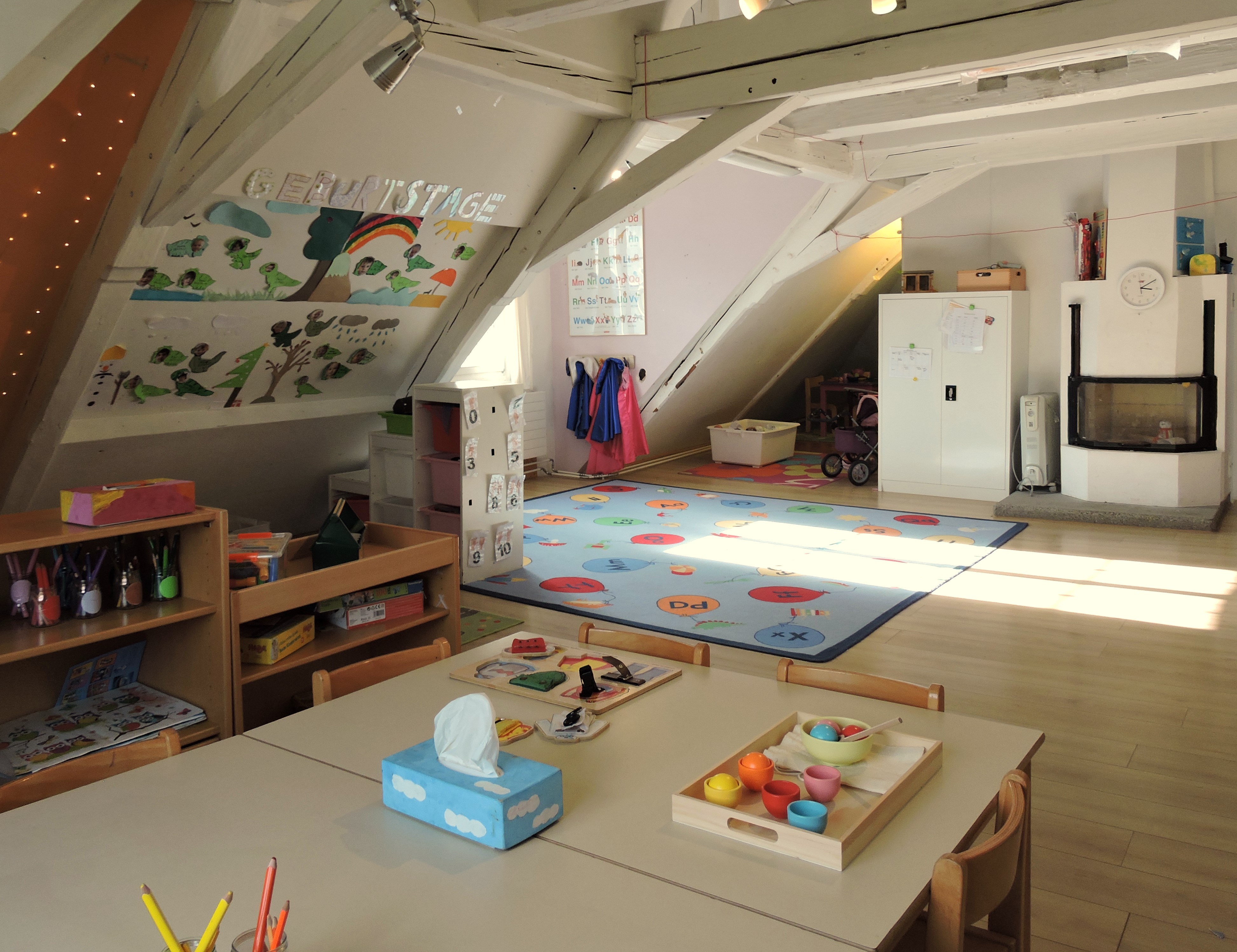 Das Haus bietet viel Platz für abwechslungsreiche, altersgerechte und kreative Angebote, welche unterschiedliche Lern- und Erlebnisbereiche ansprechen.