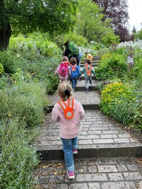 Unser schöner Garten lädt die Kinder zum Entdecken, Forschen und Spielen ein.